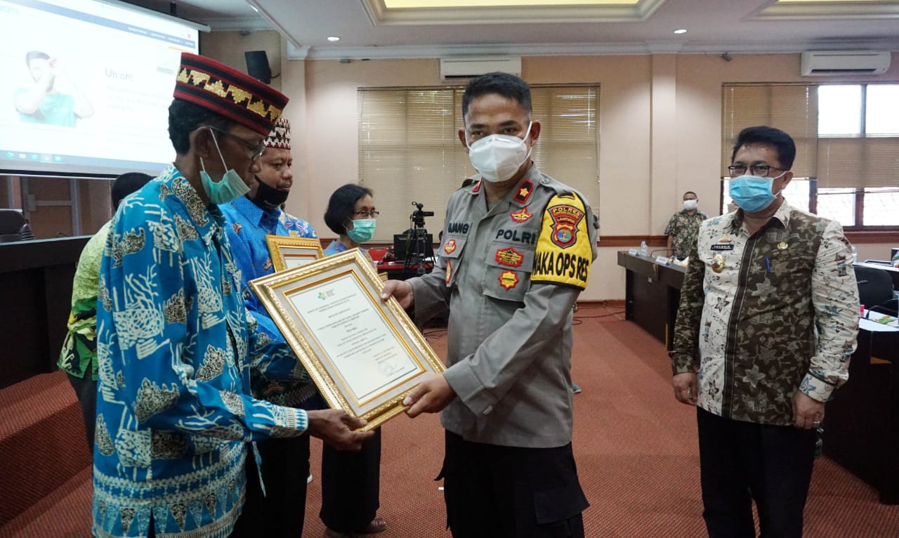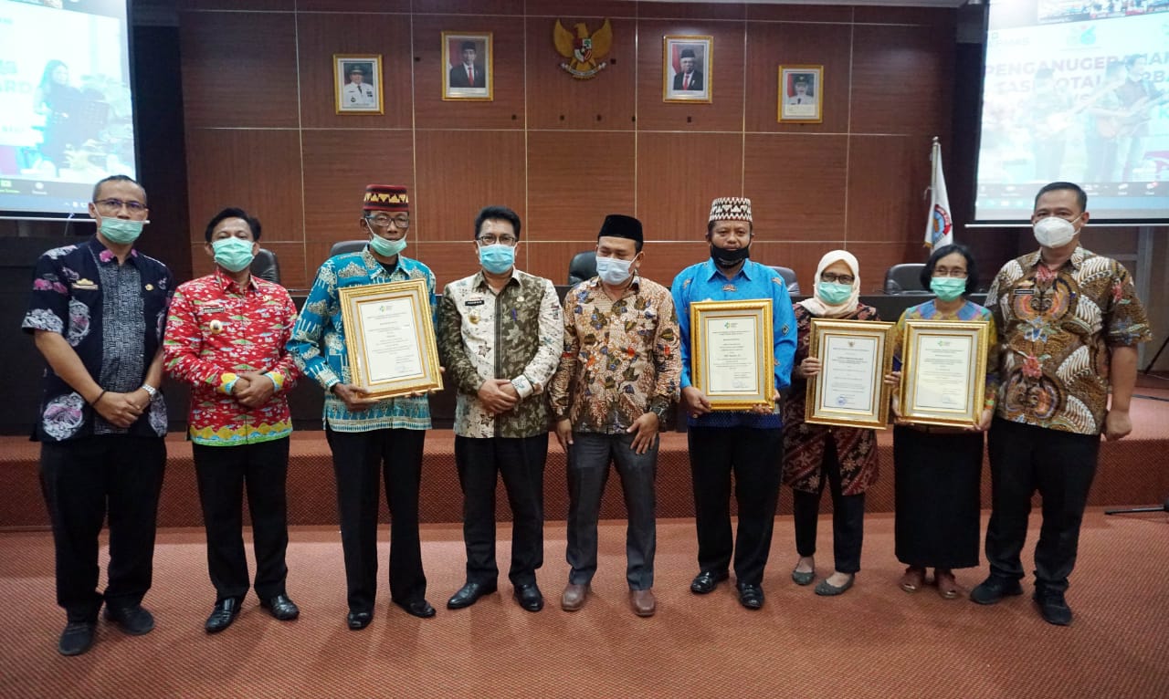 Penghargaan tersebut diserahkan Menteri Kesehatan RI Terawan Agus Putranto secara virtual kepada masing-masing kabupaten/kota melalui aplikasi Zoom Meeting.