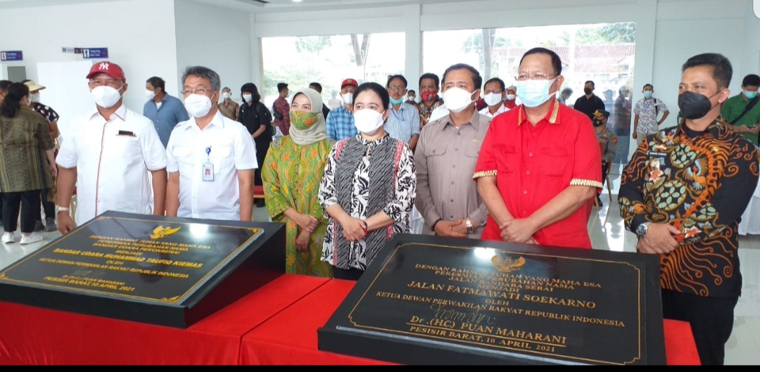 Lampung – Ketua DPR RI Puan Maharani terharu dan bangga saat meresmikan perubahan nama Bandar Udara Pekonserai menjadi Bandar Udara Muhammad Taufiq Kiemas. Puan berharap operasional bandara itu mampu meningkatkan kesejahteraan masyarakat.