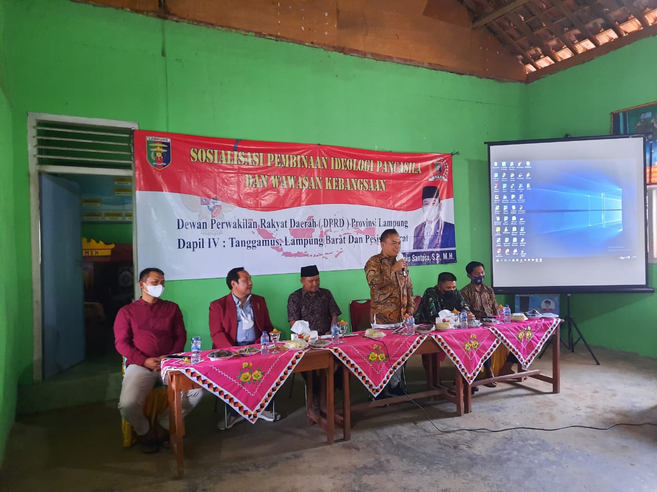 Tanggamus- Anggota DPRD Provinsi Lampung Joko Santoso menggelar Sosialisasi Pembinaan Ideologi Pancasila dan Wawasan Kebangsaan di kecamatan sumberejo desa kebumen Kabupaten Tanggamus, sabtu (05/06).