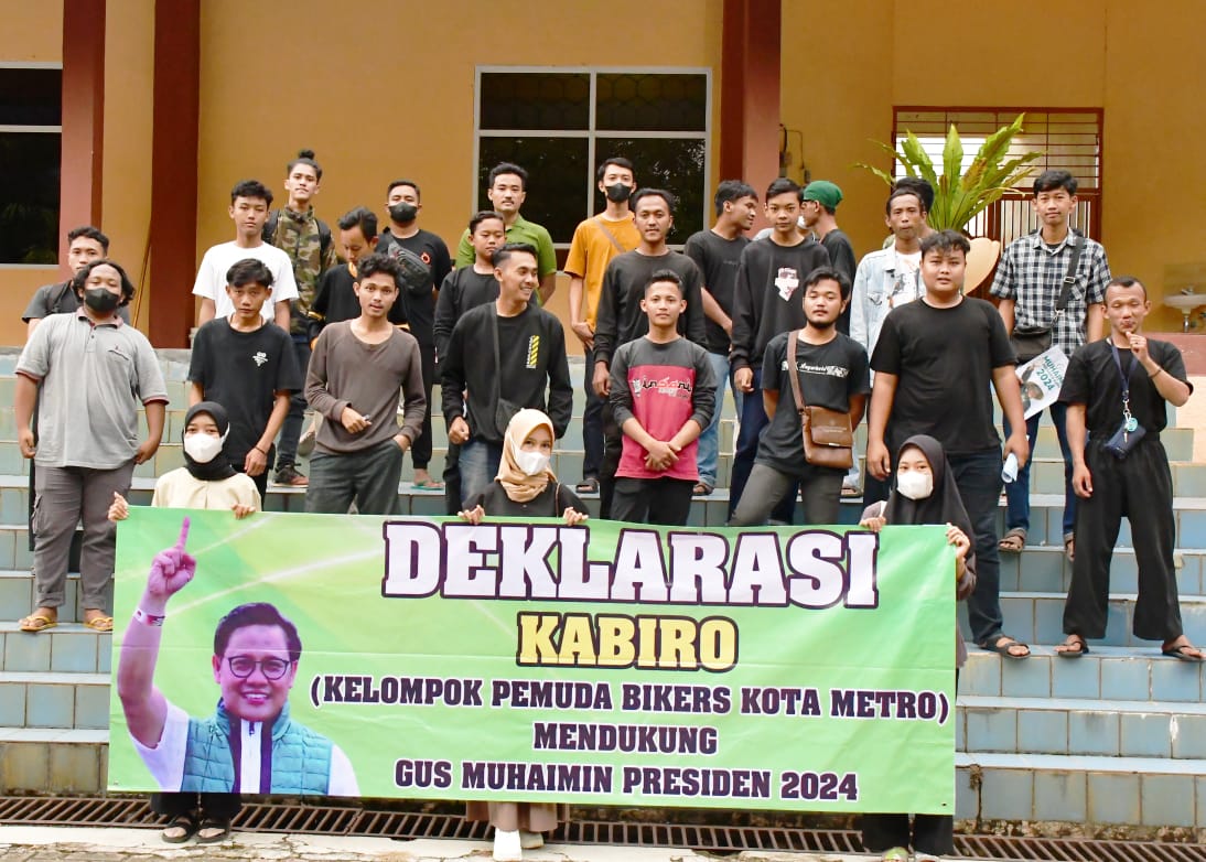 Metro – Kelompok Pemuda Bikers Kota Metro (KABIRO) menyatakan dukungan dan menggelar deklarasi kepada Muhaimin Iskandar (Gus Muhaimin) sebagai calon presiden Indonesia tahun 2024. Deklarasi yang diadakan pada Minggu 20 Februari 2022) di Stadion 24 Kota Metro ini sebagai bentuk dan wujud dukungan para komunitas Kabiro kepada Gus Muhaimin menjadi pemimpin masa depan yang membawa aspirasi pemuda.