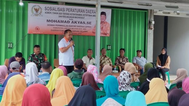 Lampung Selatan — Anggota DPRD Kabupaten Lampung Selatan, dari Fraksi PKS, M Akyas kembali menggelar Sosialisasi Peraturan Daerah (Sosper) Nomor: 3 tahun 2020 tentang Ketentraman, Ketertiban Umum dan Perlindungan Masyarakat.