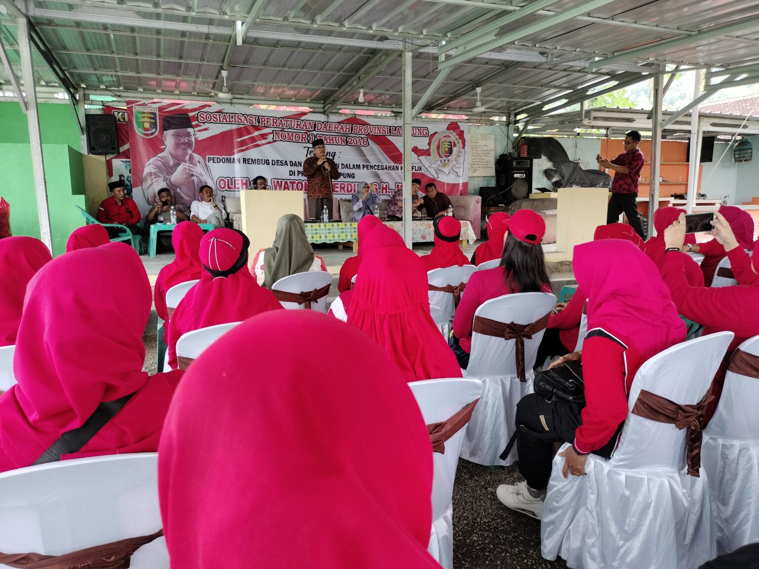“Ibu Ketua Umum Megawati pada HUT PDIP ke-50 mengatakan, peran perempuan adalah yang utama. Nah, hari ini menjadi pemecah rekor selama kegiatan berlangsung, yang mayoritas peserta Ibu – ibu,” kata Anggota Fraksi PDIP DPRD Lampung, Watoni Noerdin, saat menggelar Sosialisasi Peraturan Daerah Provinsi Lampung Nomor 1 Tahun 2016 tentang Pedoman Rembug Desa dan Kelurahan dalam Pencegahan Konflik di Provinsi Lampung.