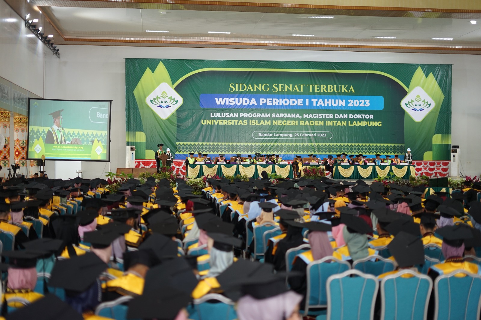 Bandar Lampung – Universitas Islam Negeri (UIN) Raden Intan Lampung meluluskan 800 wisudawan pada Sidang Senat Terbuka Wisuda Periode I Tahun 2023, Sabtu (25/02/2023).