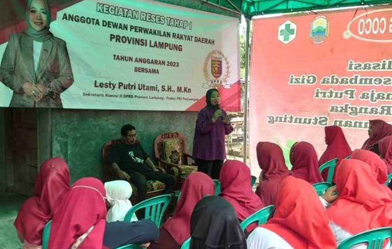 Lampung Selatan — Anggota DPRD Propinsi Lampung dari fraksi PDI Perjuangan asal daerah pemilihan Lampung II (Kabupaten Lampung Selatan), Lesty Putri Utami menggelar reses ke I Tahun 2023 di Desa Bumi Sari, Kecamatan Natar Kabupaten Lampung Selatan.