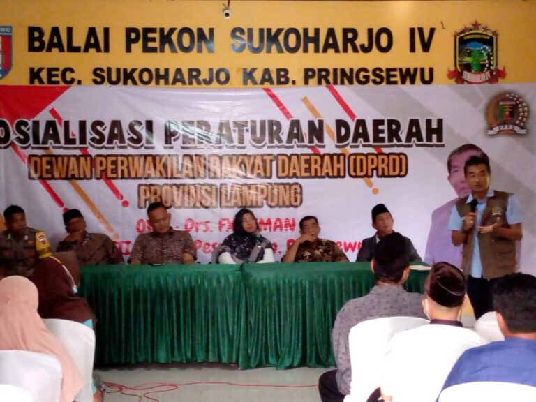 Pringsewu — Menjadi ciri khas dari dua narasumber, yaitu Andreas Andoyo dan Sudewi, yang digandeng oleh Anggota DPRD Provinsi Lampung, FX. Siman, di setiap kegiatan baik Sosialisasi Peraturan Daerah (Sosperda) maupun Pembinaan Ideologi Pancasila. Ciri khas tersebut adalah ‘Tung Kinta Kintung, Jos. Pak Siman Memang Jos’