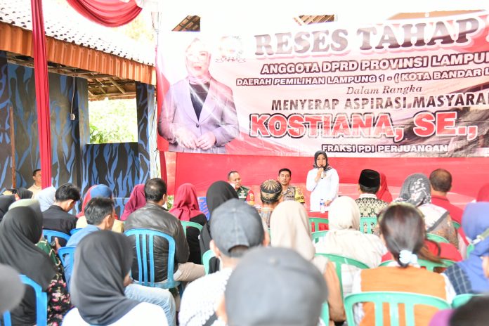 Bandar Lampung – Mengisi reses tahap kedua, Anggota DPRD Provinsi Lampung dari Fraksi PDI Perjuangan Kostiana, melaksanakan kegiatan reses dalam rangka menyerap aspirasi masyarakat di Kelurahan Kelapa Tiga, Kecamatan Tanjung Karang Barat, Kota Bandarlampung, Kamis ( 14/9/2023 ).