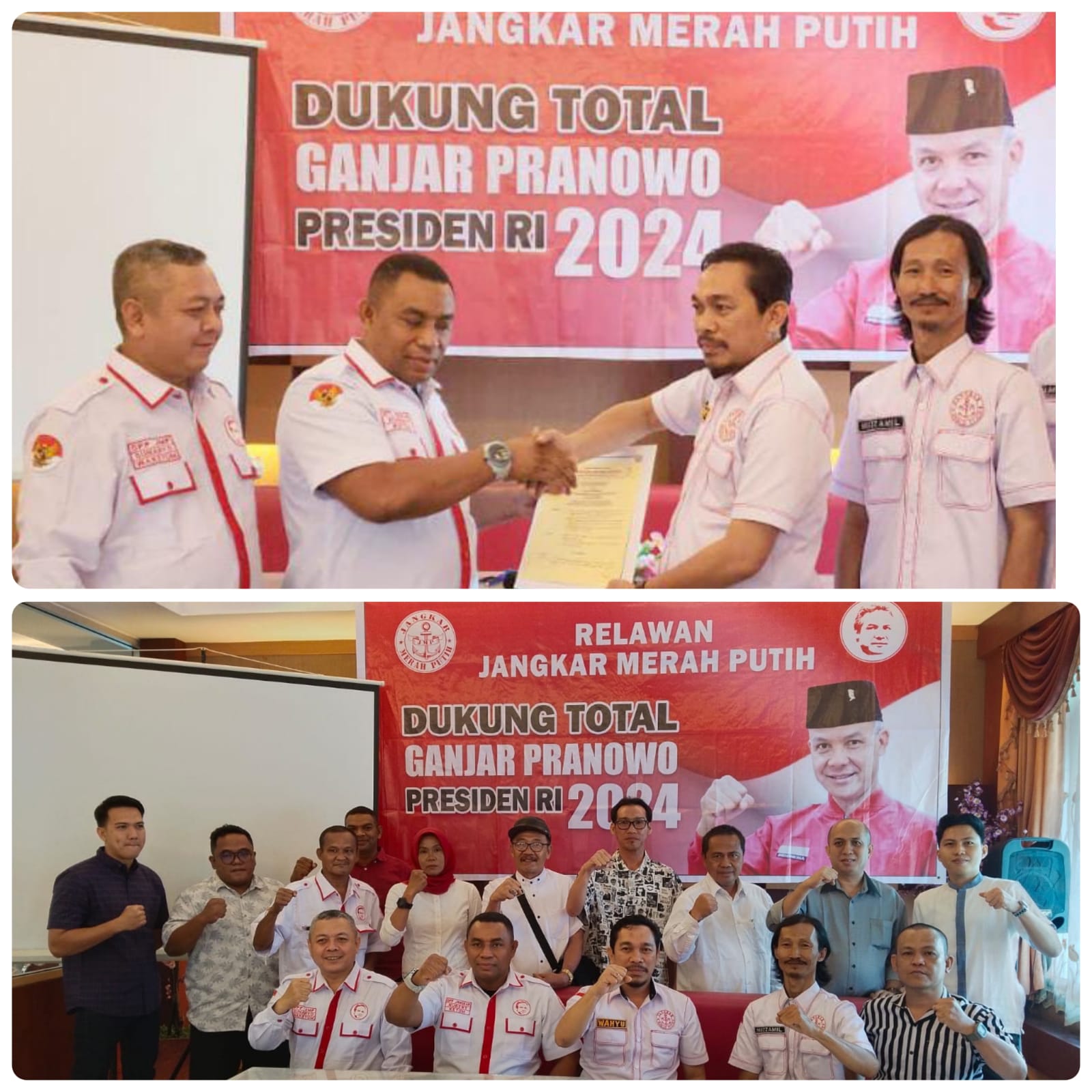“Pada siang hari ini tepat 5 Oktober 2023 bertepatan HUT TNI ke-78, kami menerima Ketua dan Sekretaris pengurus Relawan Jangkar Merah Putih Provinsi Lampung sekaligus menyerahkan SK buat mereka supaya mereka bisa langsung beraktivitas, semoga dengan SK ini keluar kepengurusan DPD I Jangkar Merah Putih Lampung bisa memenangkan Ganjar di Provinsi Lampung,” terangnya.