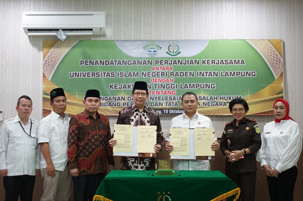 Bandar Lampung – Universitas Islam Negeri (UIN) Raden Intan Lampung (RIL) melakukan Penandatanganan Perjanjian Kerja Sama (PKS) dengan Kejaksaan Tinggi (Kejati) Lampung, Rabu (18/10/2023).