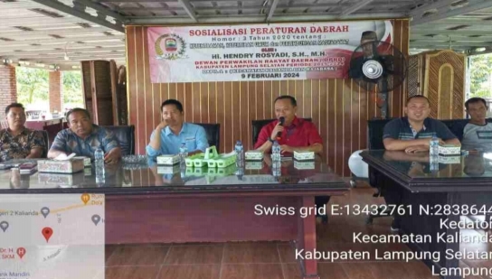 LAMPUNG SELATAN — Ketau Dewan Perwakilan Rakyat Daerah (DPRD) Lampung Selatan, Hendri Rosyadi melakukan Sosialisasi Peraturan Daerah (Sosper) Jum,at (9/2/2024)