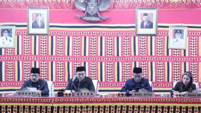 Rapat paripurna dipimpin Wakil Ketua I DPRD Lampung Selatan Agus Sartono didampingi Wakil Ketua II Agus Sutanto dan Wakil Ketua III Amelia serta Sekretaris DPRD Thomas Amirico.