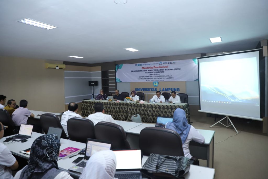 Bandar Lampung – Universitas Lampung (Unila) mengadakan monitoring dan evaluasi (monev) pelaksanaan hibah Program Kompetisi Kampus Merdeka (PKKM) pada Rabu, 18 September 2024.