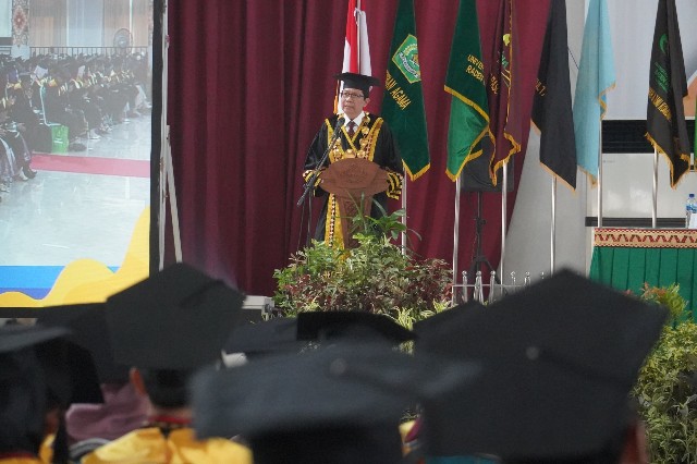 “Atas nama pribadi dan pimpinan universitas, saya mengucapkan selamat dan sukses kepada para wisudawan, serta kepada orang tua, wali, dan seluruh keluarga,” ujar Rektor.
