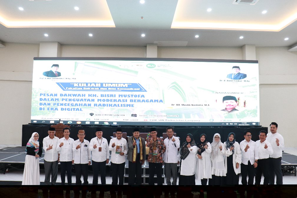 Bandar Lampung – Fakultas Dakwah dan Ilmu Komunikasi (FDIK) Universitas Islam Negeri (UIN) Raden Intan Lampung (RIL) menyelenggarakan kuliah umum bertajuk Pesan Dakwah KH Bisri Musthofa dalam Penguatan Moderasi Beragama dan Pencegahan Radikalisme di Era Digital, Senin (23/09/2024).
