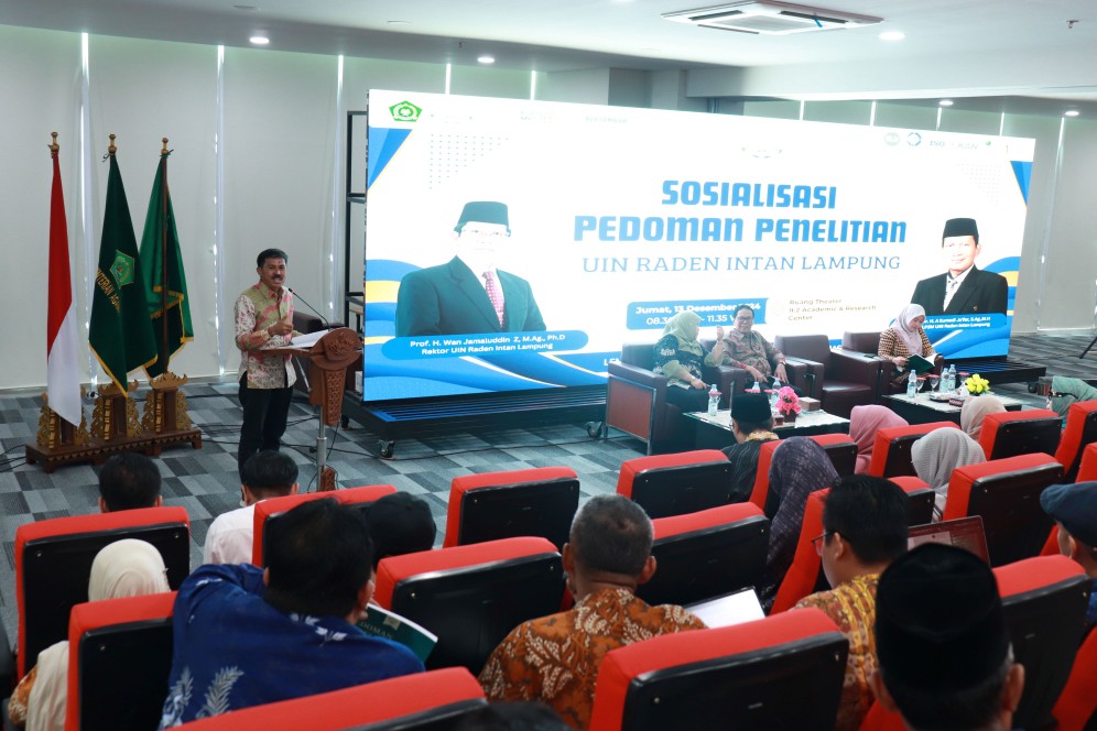 Bandar Lampung – Lembaga Penelitian dan Pengabdian kepada Masyarakat (LP2M) Universitas Islam Negeri (UIN) Raden Intan Lampung (RIL) menggelar Sosialisasi Pedoman Penelitian pada Jumat, (13/12/2024).