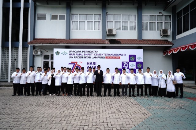 Bandar Lampung – Sivitas Akademika Universitas Islam Negeri (UIN) Raden Intan Lampung (RIL) memperingati Hari Amal Bhakti (HAB) ke-79 Kementerian Agama (Kemenag) RI dengan melaksanakan upacara di halaman Gedung Academic & Research Center, Jumat (03/01/2025).