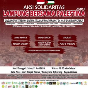 Aksi Solidaritas Lampung Bersama Palestina Jilid 2: Suara Kemanusiaan untuk Gaza Bandarlampung, Berita Utama|24 Mei 202424 Mei 2024oleh seribuberita Bandar Lampung – Pada hari ke-236 sejak Gaza dilanda serangan oleh Zionis
