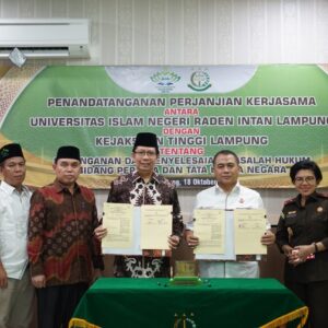 UIN Raden Intan Tandatangani Kerja Sama Bidang Hukum Perdata dan Tata Usaha Negara dengan Kejati Lampung Bandarlampung, Berita Utama|18 Oktober 202319 Oktober 2023oleh Seribu Berita Bandar Lampung – Universitas Islam Negeri (UIN) Raden Intan Lampung (RIL) melakukan