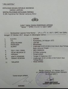 Bandarlampung- Mandeknya kasus yang dilaporkan Surino mengenai dugaan tindak pidana pemalsuan nomor