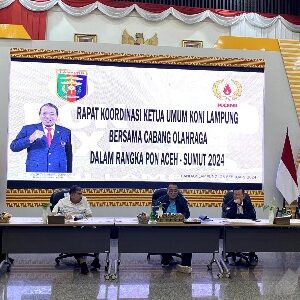 Jelang Penyelenggaraan PON XXI Sumut – Aceh, Gubernur Arinal Gelar Rakor Bersama Pengurus Cabor KONI Lampung News, Pemerintahan|29 Februari 2024oleh seribuberita BANDARLAMPUNG – Pemerintah Provinsi Lampung menggelar rapat Koordinasi bersama Cabang Olahraga (Cabor)